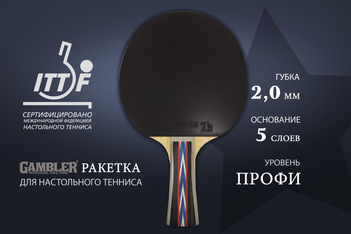 Ракетки Gambler – это уникальный вариант для любителей и профессионалов настольного тенниса. Ракетки Gambler от Start Line собраны из отдельных комплектующих, которые отличаются достойным качеством и прочностью. Ракетка Gambler 6 STAR имеет сертификат ITTF – это сертификат качества Международной федерации настольного тенниса. Ракетка полностью соответствует международным стандартам и подходят для игры на официальных соревнованиях и чепмпионатах. Ракетка с конической рукояткой имеет небольшой диаметр хвата и подойдет для игроков с узкой ладонью. Коническая рукоятка считается одной из самых удобных и популярных форм ручек. Основание ракетки Gambler 6 STAR выполнено из 5 слоев лимбы и абачи — специально подобранные породы дерева. Такое количество слоев позволит играть с высокой скоростью мяча и сделать игру зрелищной. Ракетка оснащена спортивной твердой губкой толщиной 2,0 мм, c шипами внутрь. Показатель скорости 96 – ракетка подойдет для игры в нападении, вращение 94 – отлично подойдет для игры с подкрутками и подрезками, контроль 96 – позволит всем игрокам насладиться удобной игрой. Ракетки Gambler имеют хороший показатель контроля, улучшенные скорость и кручение. Нет ограничений по возрасту, ракетки могут быть использованы и детьми, и взрослыми.