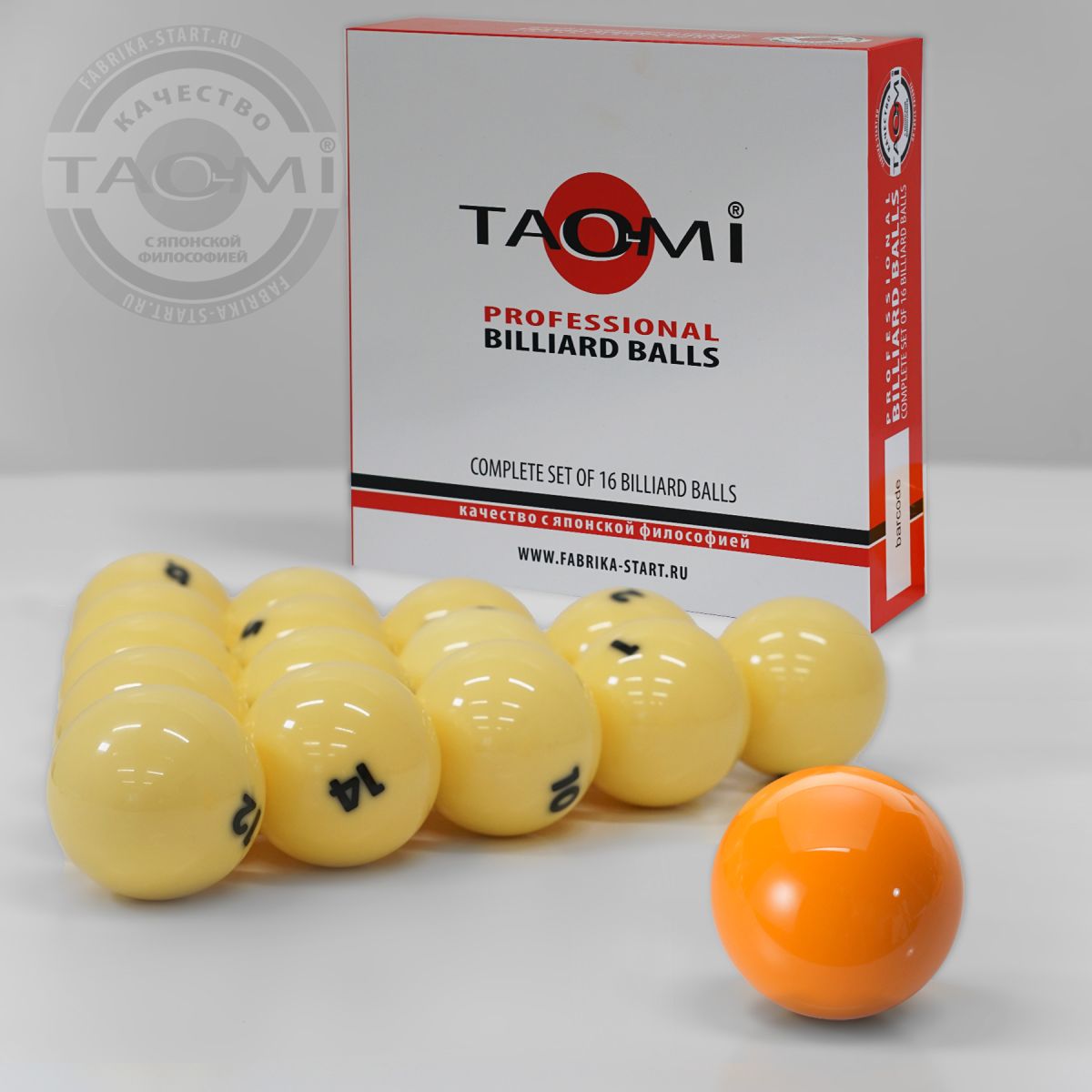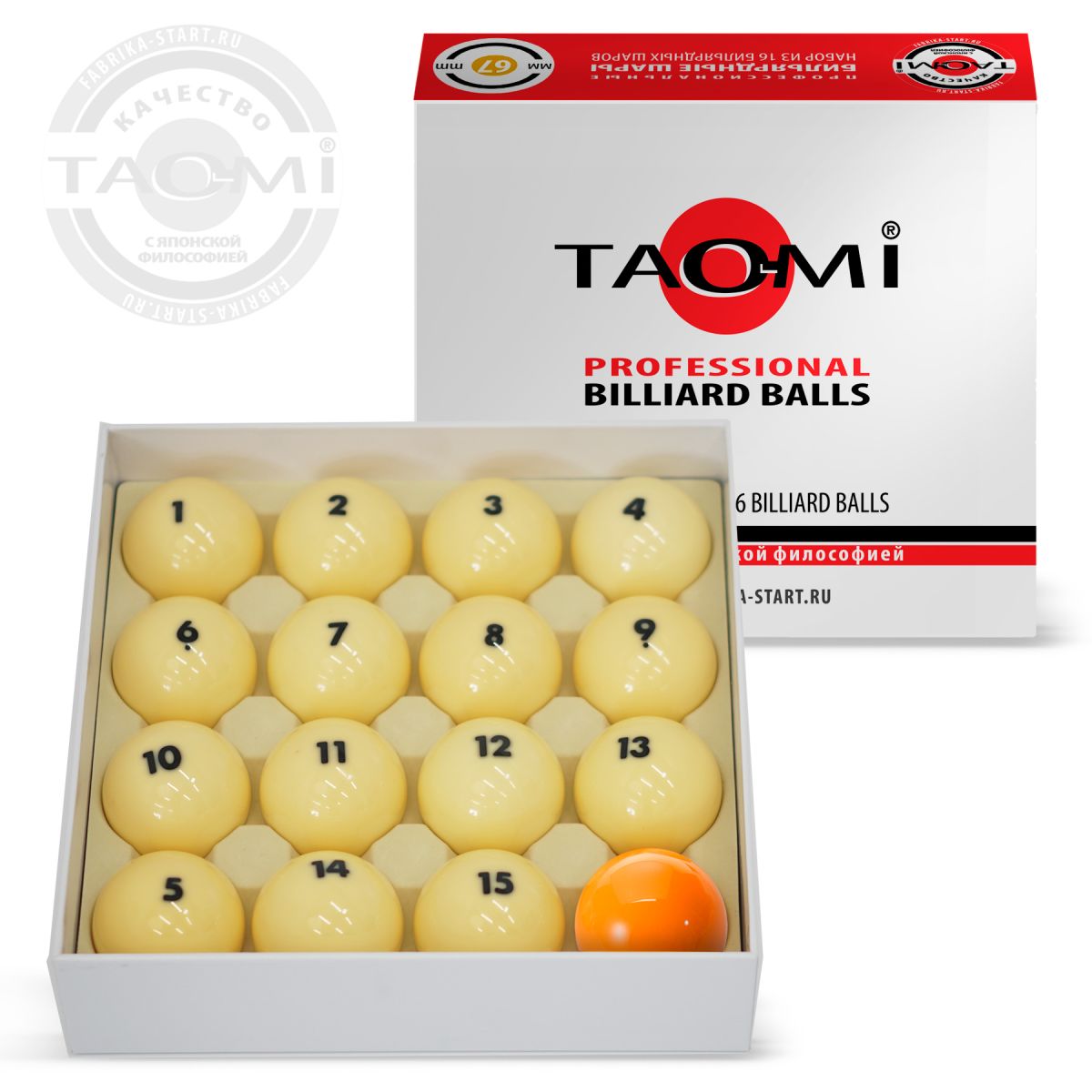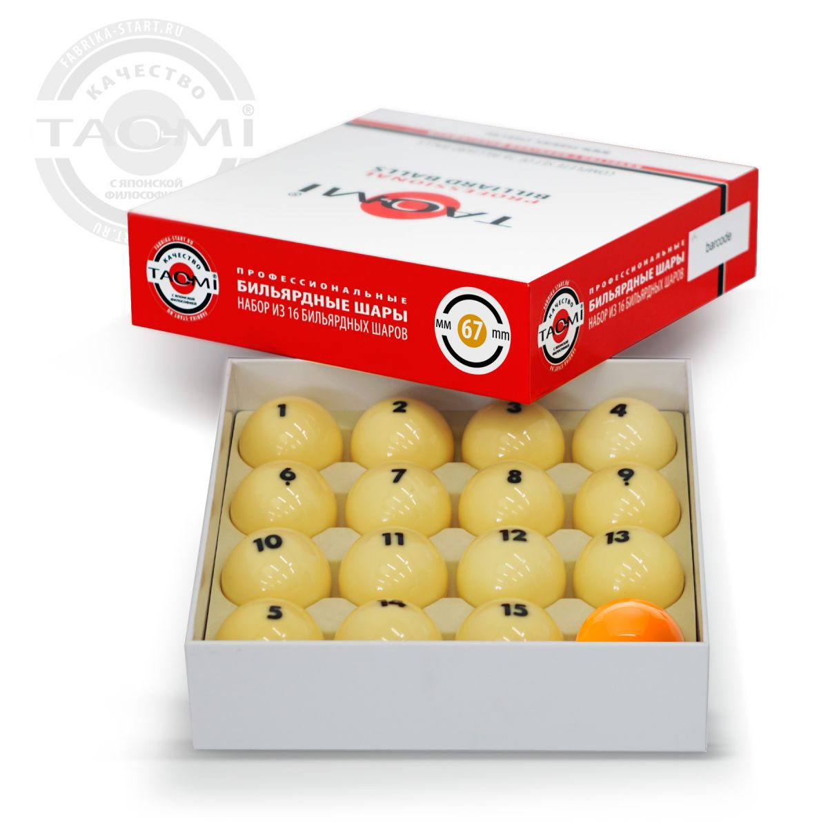 TAO-MI БИЛЬЯРДНЫЕ ШАРЫ PROFESSIONAL BILLIARD BALLS АНАЛОГ ЛУЧШИХ МИРОВЫХ ОБРАЗЦОВ! Фабрика «Старт» на правах крупнейшего производителя оборудования для бильярда представляет абсолютную новинку – бильярдные шары TAO-MI PROFESSIONAL BILLIARD BALLS. Мы выпустили продукт высочайшего качества по привлекательной цене. PROFESSIONAL BILLIARD BALLS — шары из фенол-альдегидной смолы собственного бренда Фабрики «Старт», которые продаются эксклюзивно на территории России и СНГ. Шары TAO-MI разработаны под широкую аудиторию, отвечая всем требованиям профессионального уровня, они являются самым привлекательным предложением на бильярдном рынке. Новейшая технология производства шаров из фенол-альдегидной смолы разработана одной из дочерних компаний японской химической корпорации Sumitomo Chemical Co., Ltd. Запатентованная технология изготовления бильярдных шаров TAO-MI и система финишной полировки дают результат, который удивит даже опытных и искушенных ценителей. Идеально гладкая поверхность и однородная структура – сильные стороны этого продукта. Фенол-альдегидная смола придает упругость шару, поэтому шар хорошо балансирует, держит траекторию и дает максимально точный отскок. Высокие эксплутационные характеристики продукции TAO-MI гарантируют, что со временем шары не потеряют блеск, они устойчивы к царапинам, и будут долго и исправно выполнять свои функции, сохраняя физические свойства даже после многократных сильных ударов. Комплект PROFESSIONAL BILLIARD BALLSnbsp;nbsp;состоит из 15 шаров с номерами и битком бордового либо желтого цвета. Диаметр шара строго 67 мм. Вес каждого шара составляет 256 грамм. Возможное отклонение не более #43;-3 гр в пределах одного комплекта. Однородность цвета может незначительно варьироваться на полтона. Продуманная упаковка укомплектована надежным держателем шаров внутри. ПРЕИМУЩЕСТВА TAO-MI PROFESSIONAL BILLIARD BALLS - Идеальный баланс и центровка шаров - Контроль траектории шара - Идеально гладкая поверхность - Сопротивляемость ожоговым пятнам на сукне - Пониженный износ наклеек - Долгий срок эксплуатации - Лучшее соотношение «цена-качество» на рынке Бильярдные шары TAO-MI – это сбалансированное решение покупки. КАЧЕСТВО С ЯПОНСКОЙ ФИЛОСОФИЕЙ!