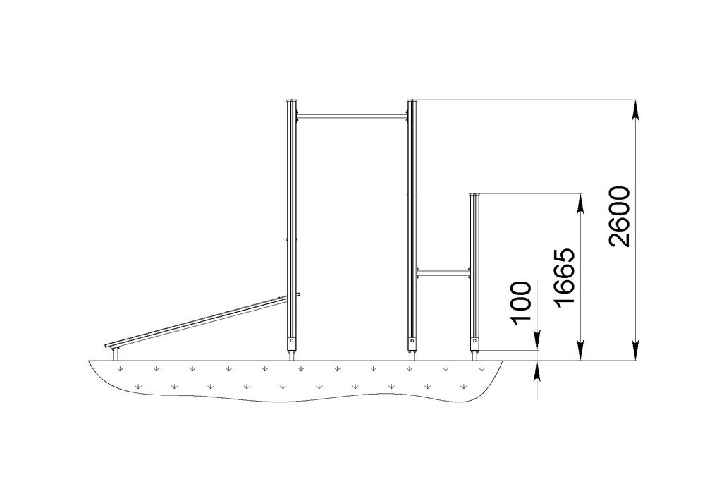 Спортивный комплекс предназначен для упражнений, развивающих основные группы мышц. Специальная обработка древесины повышает эксплуатационные характеристики комплекса, а полимерное покрытие металлических частей обеспечивает абсолютную влагостойкость конструкции при любых погодных условиях.