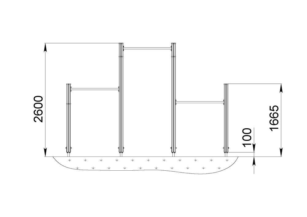 Спортивный комплекс предназначен для упражнений, развивающих основные группы мышц. Специальная обработка древесины повышает эксплуатационные характеристики комплекса, а полимерное покрытие металлических частей обеспечивает абсолютную влагостойкость конструкции при любых погодных условиях.