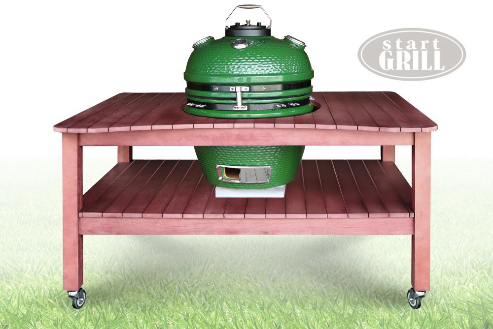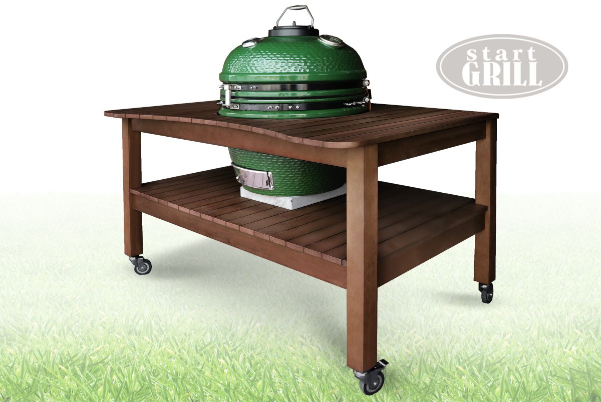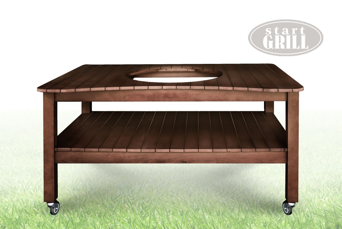 Стол для керамического гриля на колесах предназначен для комфортного отдыха на природе и удобного приготовления блюд. Стол оснащен колесами с тормозным механизмом, что обеспечит ему надежную парковку в любых местах отдыха даже на наклонной или неровной поверхности. Гриль помещается в отверстие, рассчитанное на гриль диаметром 570 мм. Между грилем и деревянной поверхностью стола присутствует необходимый тепловой зазор.