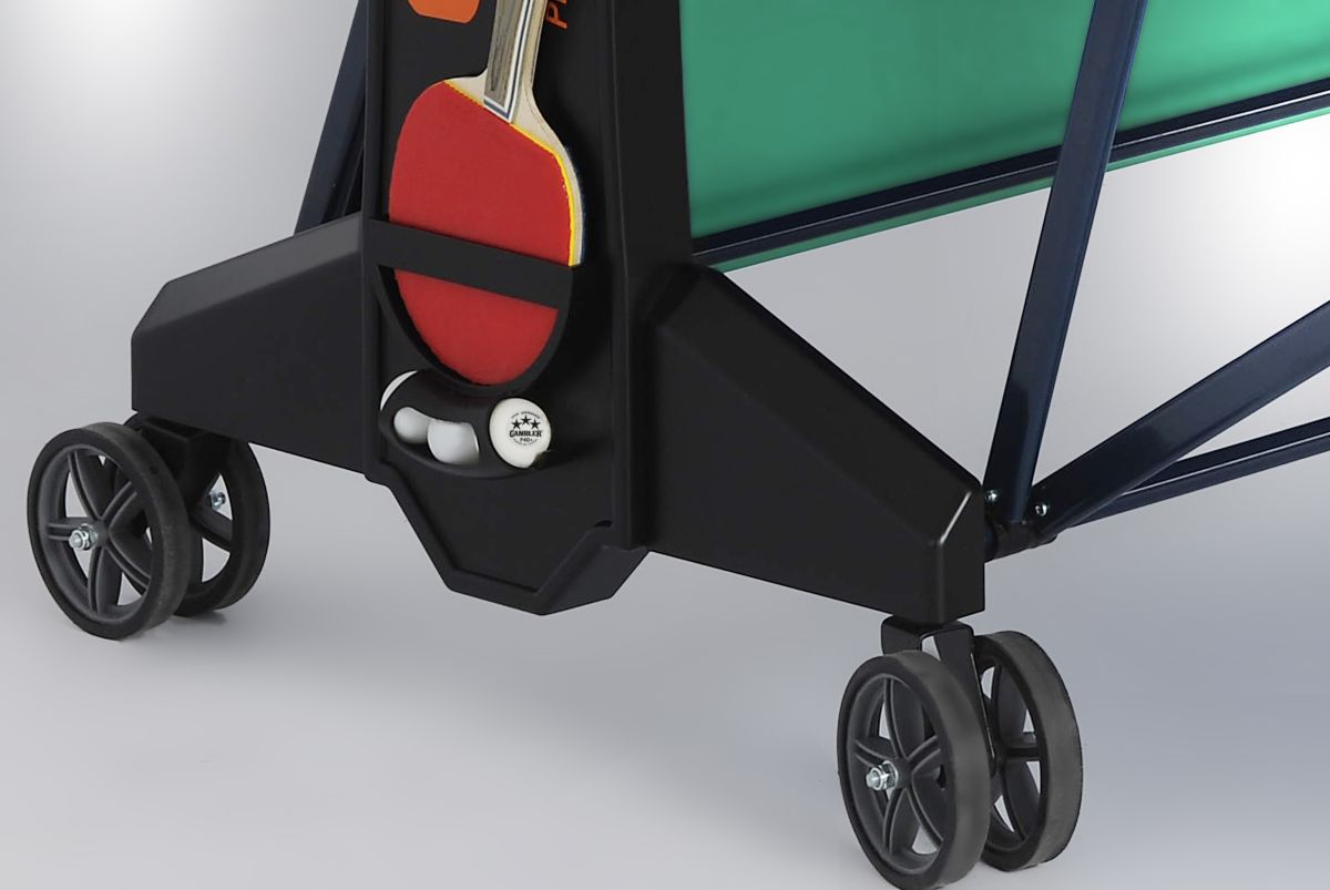 Надежный стол для организации игры в помещении. Подойдет для теннисных клубов, проведения взрослых и юниорских соревнований и просто для организации детского и семейного досуга. Конструкция оснащается уникальной системой складывания с элементами, фиксирующими теннисный стол в сложенном и разложенном виде. Высота боковых опор регулируется — для комфорта при использовании на любой поверхности, даже неровной. Прорезиненные колеса гарантируют бережное маневрирование. Толщина столешницы обеспечивает отличный отскок мяча, что по достоинству оценят любители и профессиональные игроки. Боковые накладки предназначены для хранения ракеток и мячей.