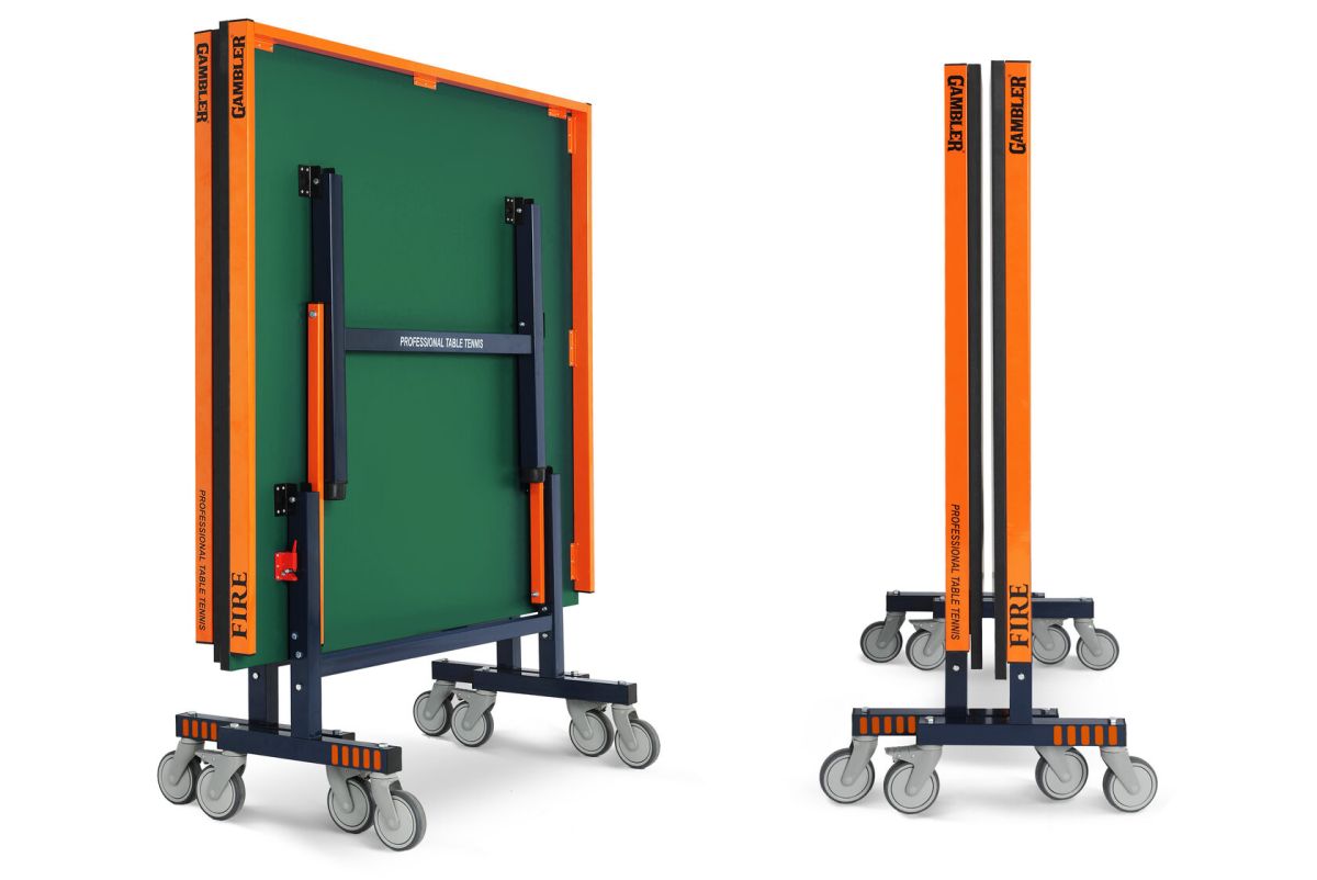 Уникальный стильный теннисный стол, который по достоинству оценят игроки-любители за устойчивое покрытие, надежную конструкцию и приемлемую стоимость. Профессионалы не смогут ни отметить высокую плотность игрового поля, которая обеспечивает отличные игровые характеристики. Fire Gambler предназначен для профессиональных игр в закрытых помещениях, идеален для тренировок в спортивных клубах и для проведения турниров. Имеет массивную столешницу толщиной 30 мм и базируется на металлической тележке с 8 транспортировочными обрезиненными роликами.