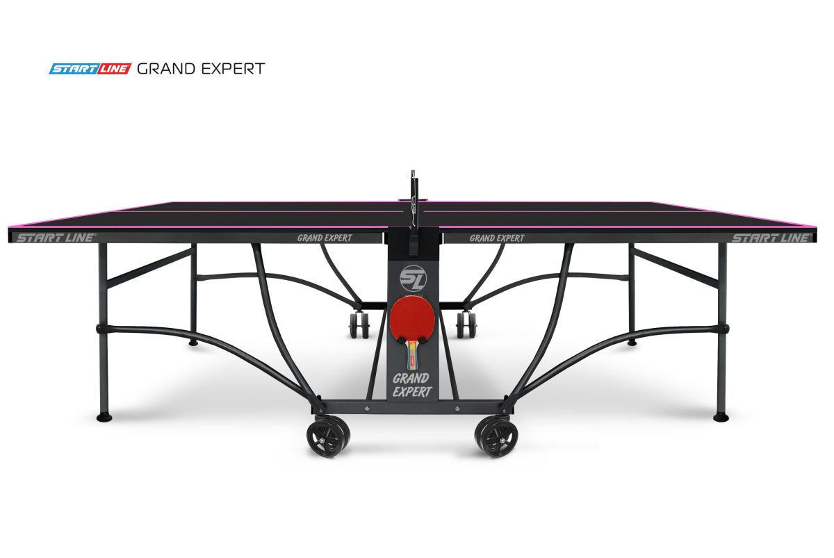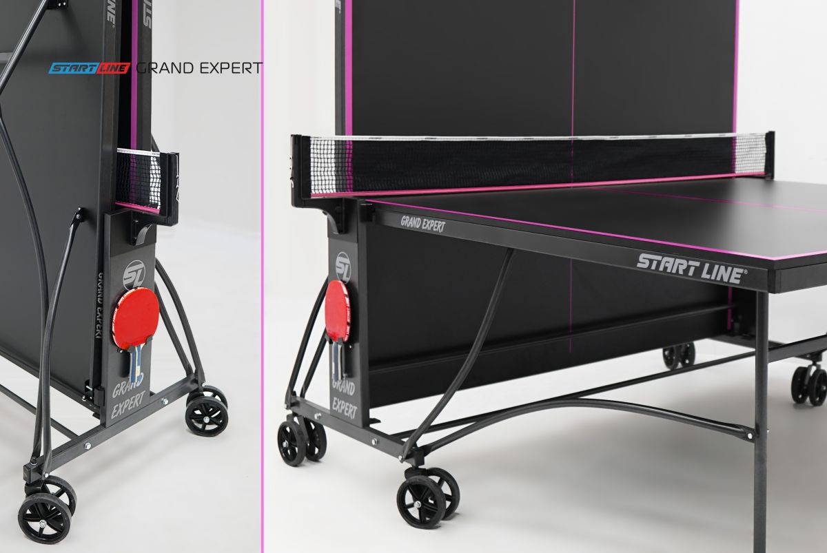 Grand Expert Black— стильный и компактный стол для игры в помещении. Grand Expert Black создан на основе популярной модели Grand Expert, которая относится к любительскому уровню теннисных столов для помещения. Grand Expert Black разработка конструкторского бюро Start Line, объединившая в себе современные методы построения стола, передовые технологии трансформации, стильный и современный дизайн. Главная особенность модели Grand Expert Black - сочетание стильного черного цвета столешницы и контрастной фиолетовой разметки. Теннисный стол Grand Expert Black станет центральной фигурой любого игрового интерьера. Размер стола в рабочем положении: 274 см в длину, 152,5 см в ширину и 76 см в высоту, что соответствует стандарту ITTF. Столешница модели Grand Expert Black сделана из прочного ЛДСП толщиной 16 мм, что гарантирует высокую точность и контроль каждого удара. Меламиновое покрытие надежно защищает столешницу от появления трещин и сколов, а кромка из ПВХ толщиной 0,45 мм и металлический кант с полимерным покрытием продлевают срок службы стола. Модель Grand Expert Black оснащена двойными поворотными обрезиненными колесами диаметром 125 мм, что гарантируют плавное перемещение стола. Регулируемая высота боковых опор дает возможность выставить идеальный уровень игрового поля даже на неровной поверхности. Усовершенствованный механизм трансформации позволяет одному человеку легко сложить стол для хранения и быстро привести его в рабочее положение. Специальные надежные фиксаторы закрепляют положение как в разложенном, так и в сложенном виде. Модель компактна, благодаря чему занимает минимум пространства при хранении. Конструкцией предусмотрен вариант трансформации стола для одиночной игры. Модель Grand Expert Black укомплектована удобным держателем для ракеток и мячейnbsp;nbsp;и встроенной сеткой, не требующей демонтажа при складывании. Начать игру можно в любое время, ведь все необходимое оборудование всегда под рукой. Теннисный стол Grand Expert Black идеальное решение для современной игровой зоны. Независимо от уровня игры каждый оценит высокие игровые характеристики модели Grand Expert Black!