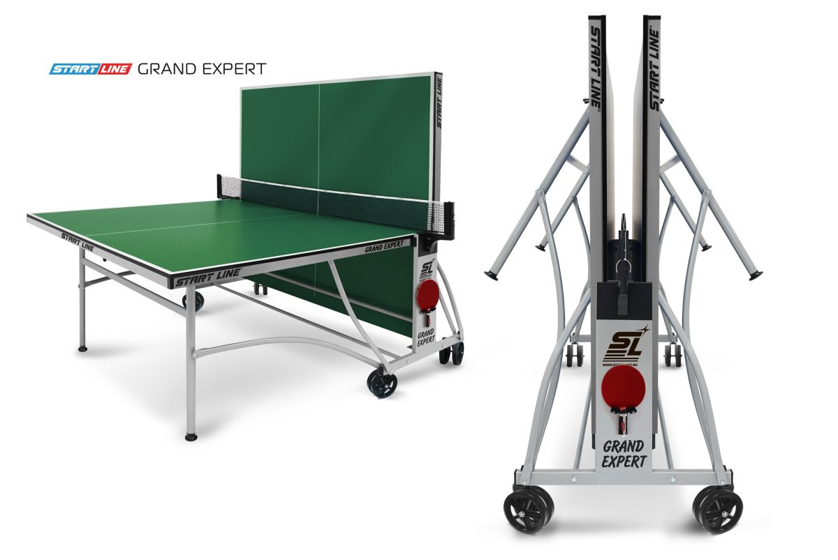 Компактный стол для игры в помещении. Новая разработка конструкторского бюро Start Line объединила в себе современные методы построения стола, передовые технологии трансформации и выразительный дизайн. Размер теннисного стола соответствует международным стандартам. В столе спроектирована новая уникальная система складывания— усовершенствованный механизм позволяет одному человеку легко сложить и быстро разложить стол. Специальные надежные фиксаторы закрепляют положение как в разложенном, так и в сложенном виде. Модель компактна при хранении и занимает минимум пространства. Наличие обрезиненных маневровых колес облегчают перемещение стола в нужную зону. Регулируемая высота боковых опор дает возможность выставить уровень игрового поля даже на неровной поверхности.nbsp;nbsp;Конструкция предусматривает в боковых накладках место для хранения ракетки.