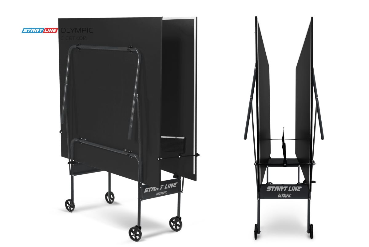 Теннисный стол Olympic Black создан на базе одной из самых популярных моделей ассортимента START LINE - Olympic, которая относится к любительскому уровню теннисных столов для помещения. Отличительная особенность модели Olympic Black - глубокий черный цвет корпуса и столешницы. Теннисный стол Olympic Black станет стильным акцентом в игровом пространстве любого интерьера. Столешница модели Olympic Black сделана из прочного материала ЛДСП толщиной 16 мм и покрыта меламином, что предотвращает появление трещин и сколов, обеспечивая равномерный отскок мяча. Кромка стола из пвх толщиной 0,45 мм защищает стол от повреждений. Теннисный стол Olympic Black имеет размеры 274 х 152,5 х 76 см в разложенном виде, чтоnbsp;nbsp;соответствует международному стандарту ITTF. Модель имеет простую и компактную систему складывания. Удобная система трансформации позволяет одному человеку легко сложить и разложить стол,nbsp;nbsp;делая его максимально компактным при хранении. Конструкцией предусмотрена возможность одиночной игры. Olympic Black оборудован встроенной сеткой, не требующей демонтажа при складывании. В комплекте со столом идет удобный чехол для аксессуаров, который позволит разместить необходимый спортивный инвентарь в игровой зоне. Стол очень маневренный за счет наличия двух поворотных транспортных и двух не поворотных колёс диаметром 125 мм. Транспортировочные колеса делают процесс установки и перемещения стола более простым, значительно экономя время и усилия при подготовке к игре. Теннисный стол Olympic Black прекрасно подходит для любительской игры в спортивном зале школы или домашних семейных турниров.