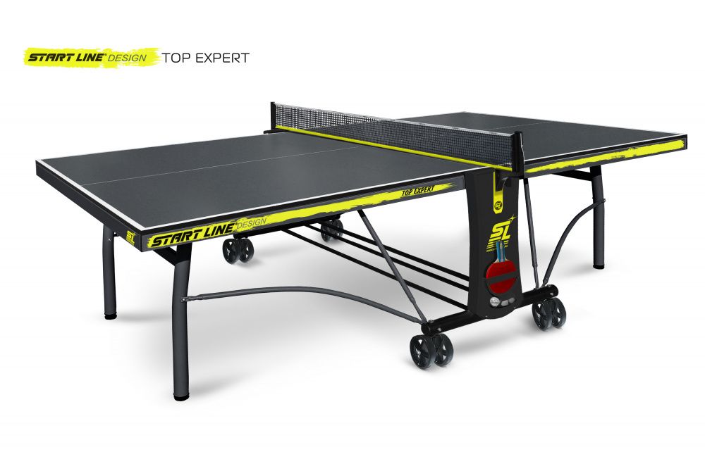 Start Line расширяет линейку своих теннисных столов моделью Top Expert Design. Высший уровень стиля и качества в мировой индустрии настольного тенниса от российского производителя! Стол дизайнерской линии Start Line имеет непревзойденное качество, а эффектный дизайн однозначно выделяют эту модель из общей линейки нашего теннисного оборудования. Новая разработка выполнена на базе последних тенденций. При создании модели использовались только современные методы построения теннисного стола. Наш опыт, наработанный годами, позволил вывести дизайн и качество продукта на высший уровень. Top Expert Design предназначен для игры в помещении. Его размер соответствует международным стандартам ITTF. Игровое поле выполнено в элегантном цвете графит. Толщина столешницы из высокопрочного лдсп 22 мм обеспечивает равномерный отскок мяча по всей поверхности. Кант по периметру толщиной 60 мм не только усиливает игровое поле, но и повышает качество игрового процесса. Комфортная система складывания стола является собственной авторской разработкой Start Line. Она предусматривает усовершенствованный механизм, позволяющий быстро и надежно закрепить положение стола как в разложенном, так и в сложенном виде. В сложенном виде одной половины столешницы предусмотрен вариант для одиночной игры. Все манипуляции производятся с рабочего места игрока для каждой из столешниц. С такой системой складывания легко справляется один человек, а стол при хранении занимает минимум пространства. Конструкция также предусматривает дополнительную фиксацию в сложенном виде для компактного хранения и безопасной транспортировки стола. Регулируемая высота боковых опор дает возможность установить стол на неровной поверхности. Стол легко перемещать благодаря 4-м сдвоенным прорезиненным маневровым колесам. Каркас и металлические тяги, выкрашенные в эксклюзивный цвет графит, позволяют надежно зафиксировать стол в рабочем положении на любой поверхности, сохраняя столешницу строго в горизонтальной плоскости. Конструкция предусматривает в боковых накладках наличие пенала для хранения мячей и ракеток. Со столом Top Expert Design сетка идет в комплекте, она оснащена системой натяжения и имеет яркую окантовку, дополняющую цветовую концепцию стола. Top Expert Design – стол впечатляющего дизайна, эксклюзивной системы трансформации, совершенных игровых и конструкционных характеристик!