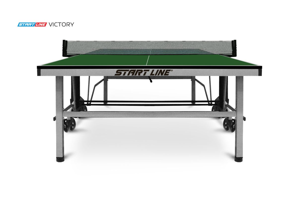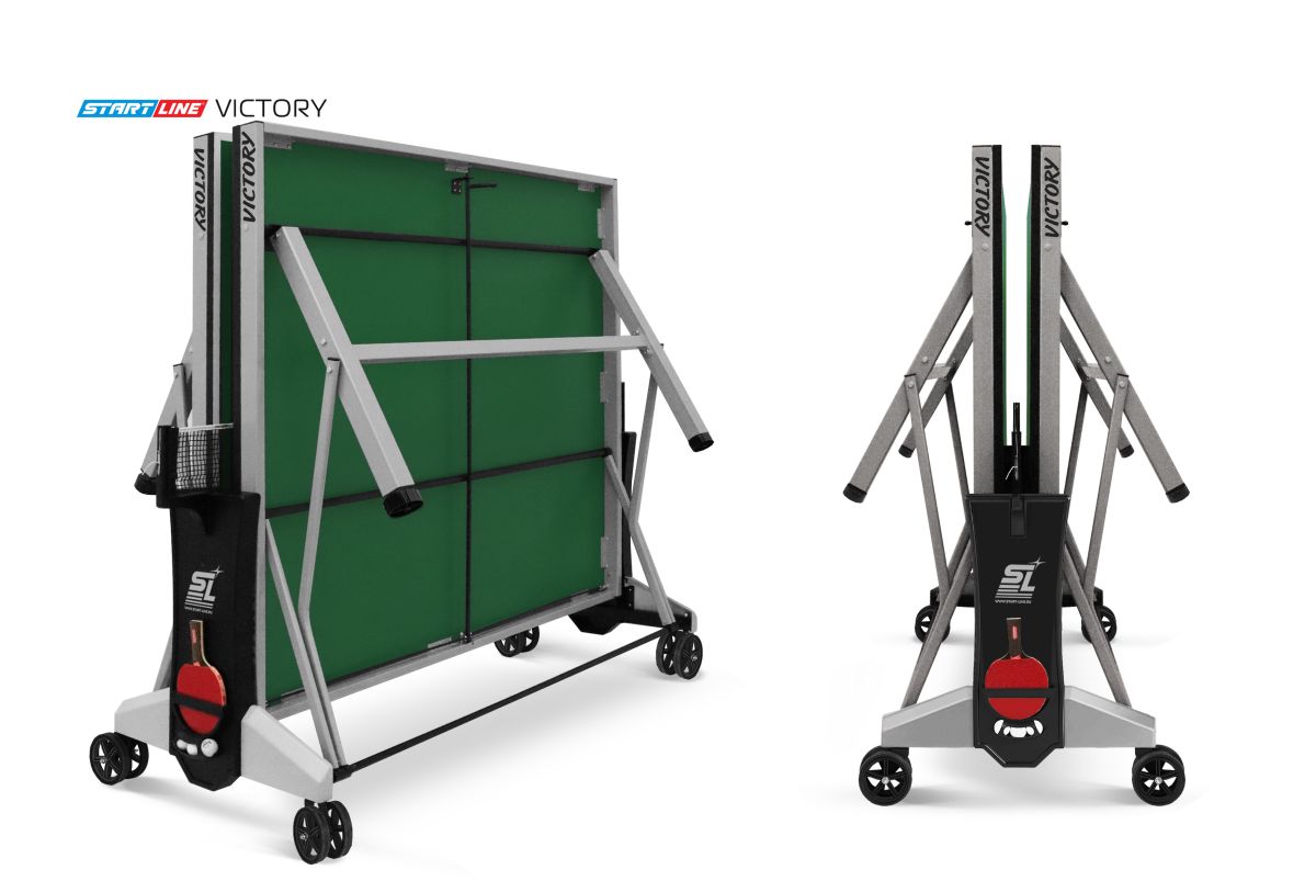 Victory – теннисный стол премиум сегмента для игры в помещении.nbsp;nbsp; Толщина столешницы обеспечивает отличный отскок мяча. Комплектация стола включает встроенную сетку с натяжным механизмом и боковые накладки, предназначенные для хранения ракеток и мячей. Высота боковых опор регулируется, адаптируясь при установке на неровной поверхности. Прорезиненные колеса гарантируют бережное и легкое маневрирование, модель легко перемещать. Конструкция оснащена уникальной системой складывания с фиксацией стола в сложенном и разложенном виде. Современный эргономичный дизайн стола выполнен на базе последних тенденций и собственных разработок. Уровень соответствует лучшим мировым аналогам и ставит эту модель в одну линейку с мировыми бестселлерами настольного тенниса. Victory – модель премиум сегмента, эксклюзивного конструктива, передового дизайна и высоких игровых характеристик!