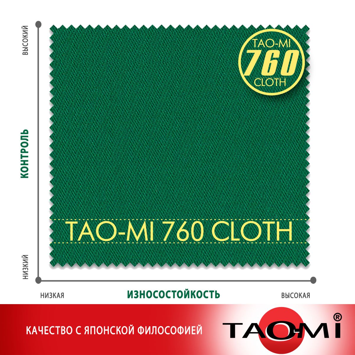 - Цвет сукна TAO-MI 760 CLOTH традиционный, зеленый. На профессиональных турнирах используют покрытие только такого оттенка – это официальная рекомендация Международной федерации бильярдного спорта.