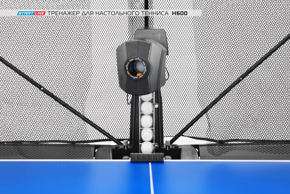 Робот / Тренажер для настольного тенниса H600 предназначен для ежедневных тренировок как для начинающих спортсменов, так и для профессионалов. Имеет несколько режимов работы. ПРЕИМУЩЕСТВА МОДЕЛИ - Тренажер имеет 9 вариантов подачи #40;вперед; назад; без вращения; левое боковое вращение; правое боковое вращение и их комбинации#41;. - Тренажер имеет возможность поворота головки вручную вверх-вниз и на 180 градусов. - Колебания головки робота влево-вправо автоматически. - Тренажер может подавать мячи с отскоком как от ближней, так и от дальней половины стола. - Тренажер имеет режим выброса «случайного» мяча. - Тренажер укомплектован сеткой для улавливания мячей со встроенным устройством возврата мячей в тренажер.