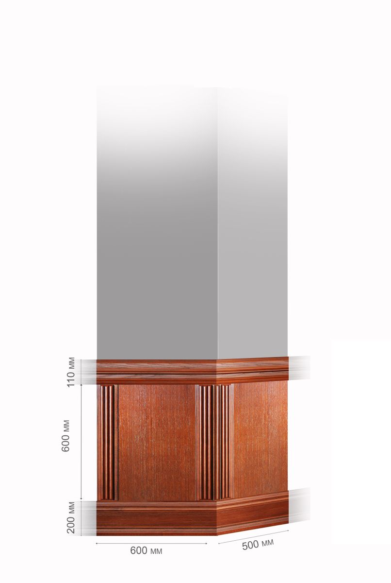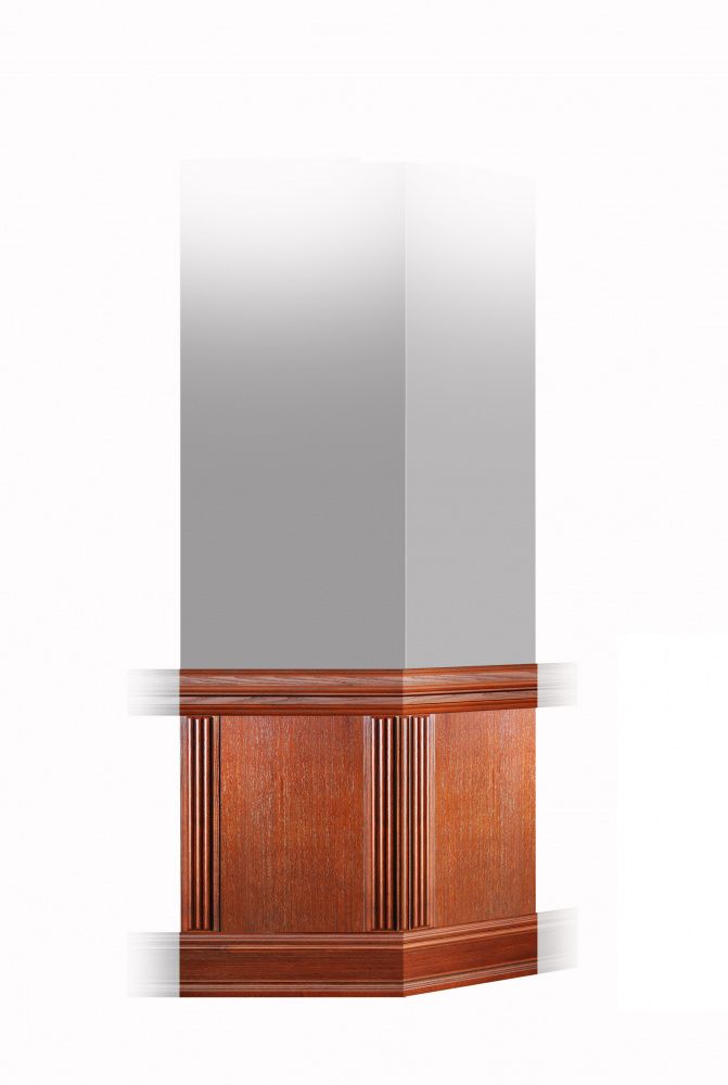 Угловой узел «Эконом» - используется для оформления углов стен в едином стиле с основными стенами и помогает выдерживать общую направленность в интерьере. В собранном виде интерьерные панели закрывают нижнюю часть стены. Узел угловой деревянных панелей «Эконом» включает в себя: горизонтальные направляющие; плинтус; вертикальные направляющие; доборные панели, которые монтируются на месте с учетом размера и рельефа прилегающей стены.