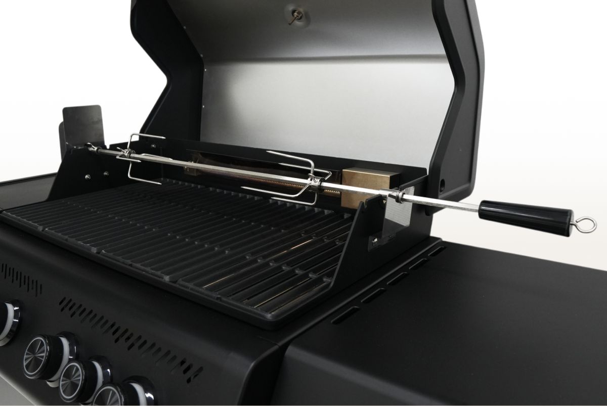 Модель вертела разработана специально для газового гриля Chimera Elite 500. Благодаря мощному мотору он способен проворачивать большие куски мяса и обеспечивать равномерное приготовление. Мотор работает от электросети 220V. Установка вертела проста и не требует специальных навыков и приспособлений. Поверхность вертела легко очищается так как имеет антипригарное покрытие.