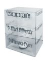 Витрина под наклейки для кия: Moori, Startbilliards. Изделие из оргстекла, одна сторона открытая, брендирование с 3-х сторон, подсветка.